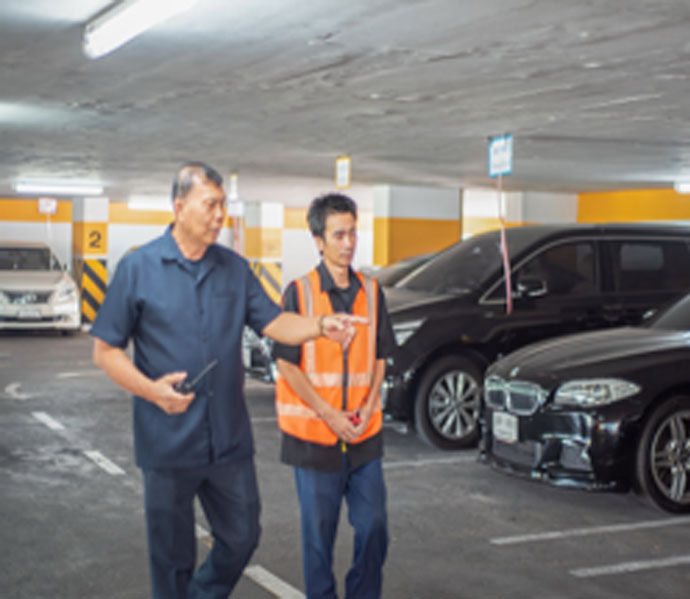 เจ้าหน้าที่คอยดูแลการเข้าออกของรถที่มาใช้บริการ