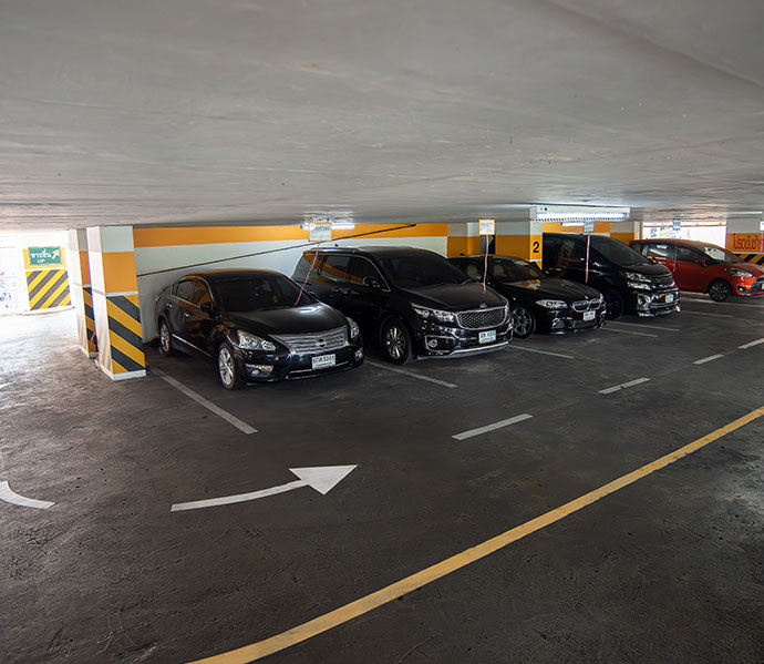 - เป็นสถานที่สำหรับจอดรถ จำนวน 6 ชั้น คือ ชั้นที่ 2-7 และสามารถรับรองรถที่เข้ามาจอดได้ประมาณ 192 คัน/วัน